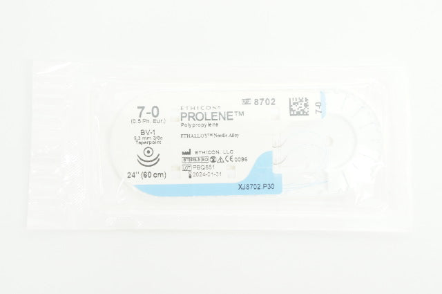 - Ethicon 8702 7-0 PROLENE, BV-1, 9.3mm 3/8c Taperpoint, 24inch