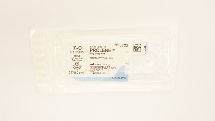 Ethicon 8702 7-0 Prolene  Polypropylene Suture Blue Monofilament BV-1 9.3mm 3/8c Taperpoint, 24inch