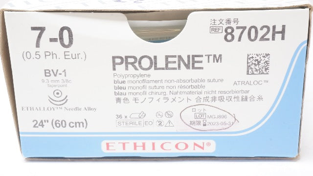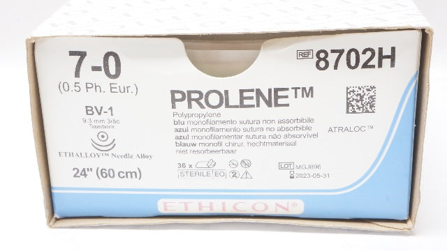 Ethicon 8702H Prolene Polypropylene 7-0 BV-1 9.3mm 3/8c 24In - Box of 27