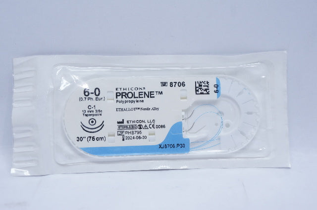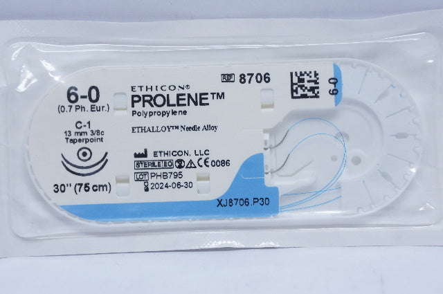 Ethicon 8706 6-0 PROLENE, C-1, 13mm 3/8c Taperpoint, 30inch