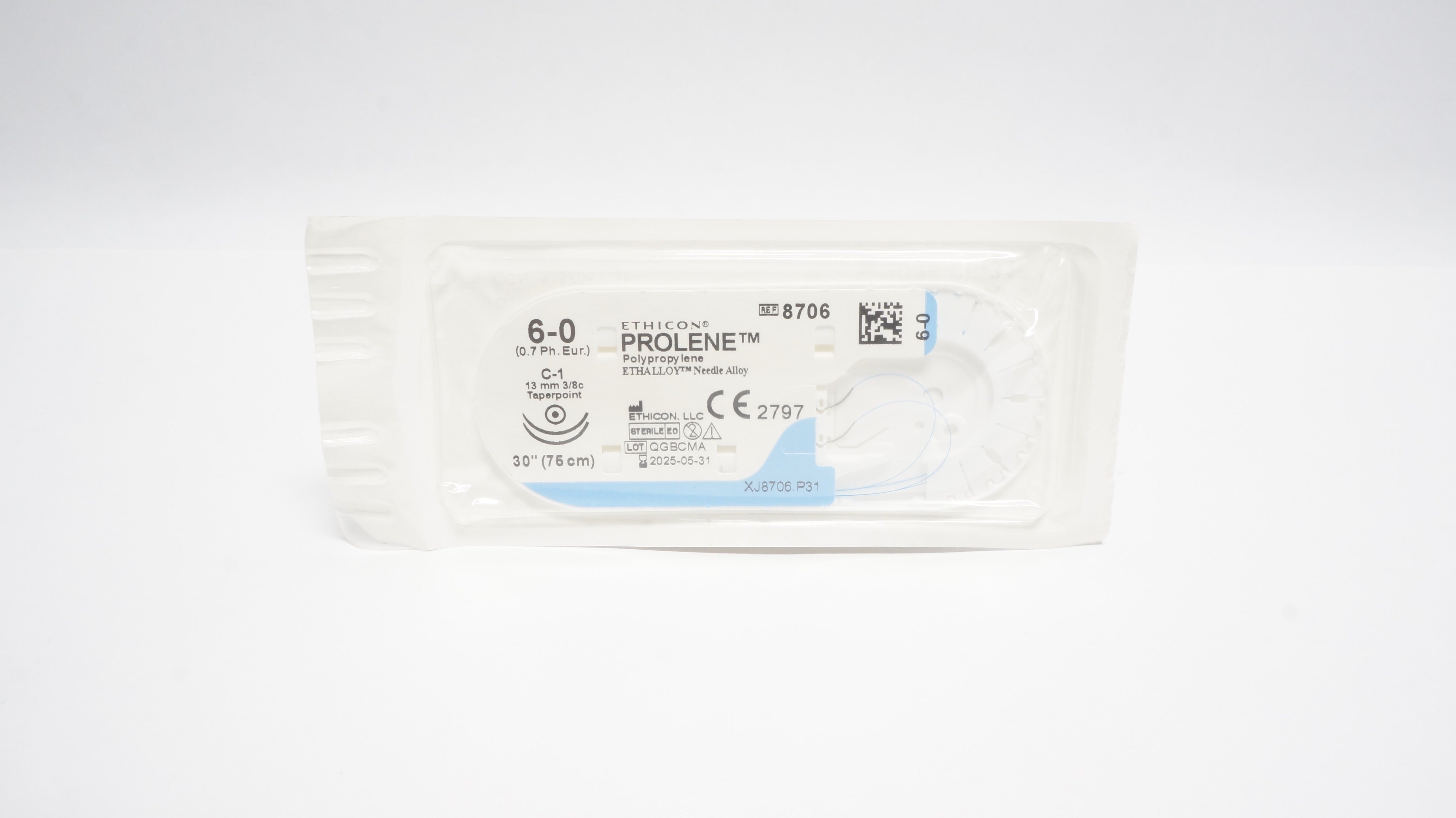 - Ethicon 8706 6-0 PROLENE Polypropylene Stre C-1 13mm 3/8c Taperpoint, 30inch (x)