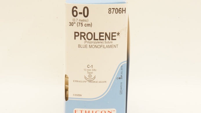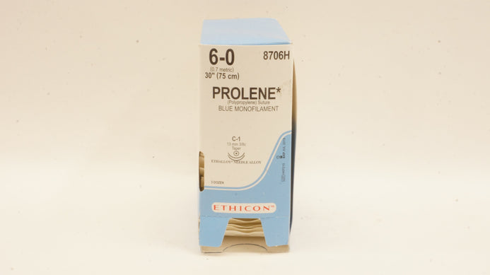 Ethicon 8706H 6-0 PROLENE Polypropylene Suture Blue Monofilament C-1 13mm 3/8c Taper, 30inch