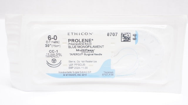 Ethicon 8707 6-0 PROLENE Polypropylene Suture Blue Monofilament CC-1 13mm 3/8c Tapercut, 30inch