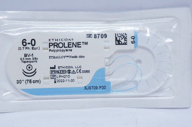 Ethicon 8709 6-0 PROLENE, BV-1, 9.3mm 3/8c Taperpoint, 30inch