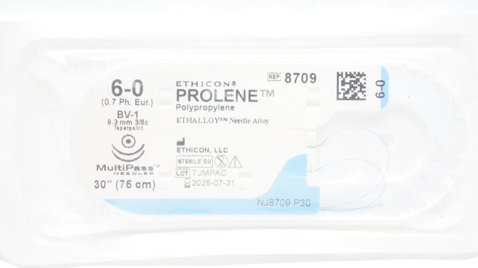Ethicon 8709 6-0 PROLENE Polypropylene Stre BV-1 9.3mm 3/8c Taperpoint 30inch