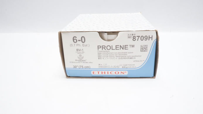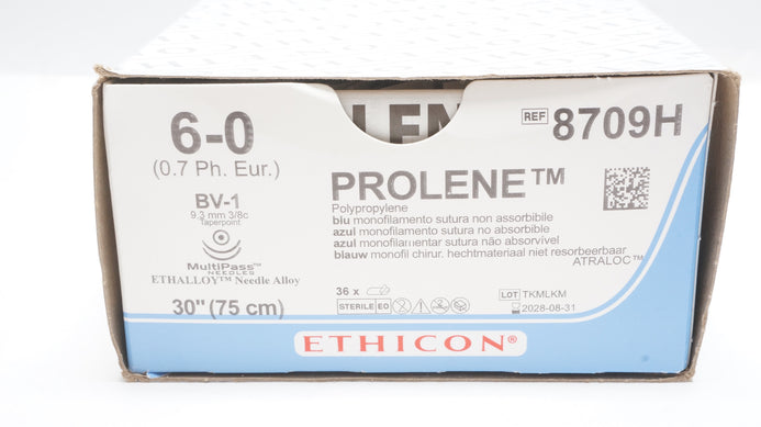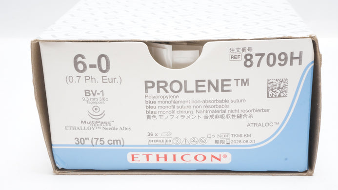 - Ethicon 8709H 6-0 Prolene Stre BV-1 9.3mm 3/8c Taperpoint, 30 inch - Box of 36