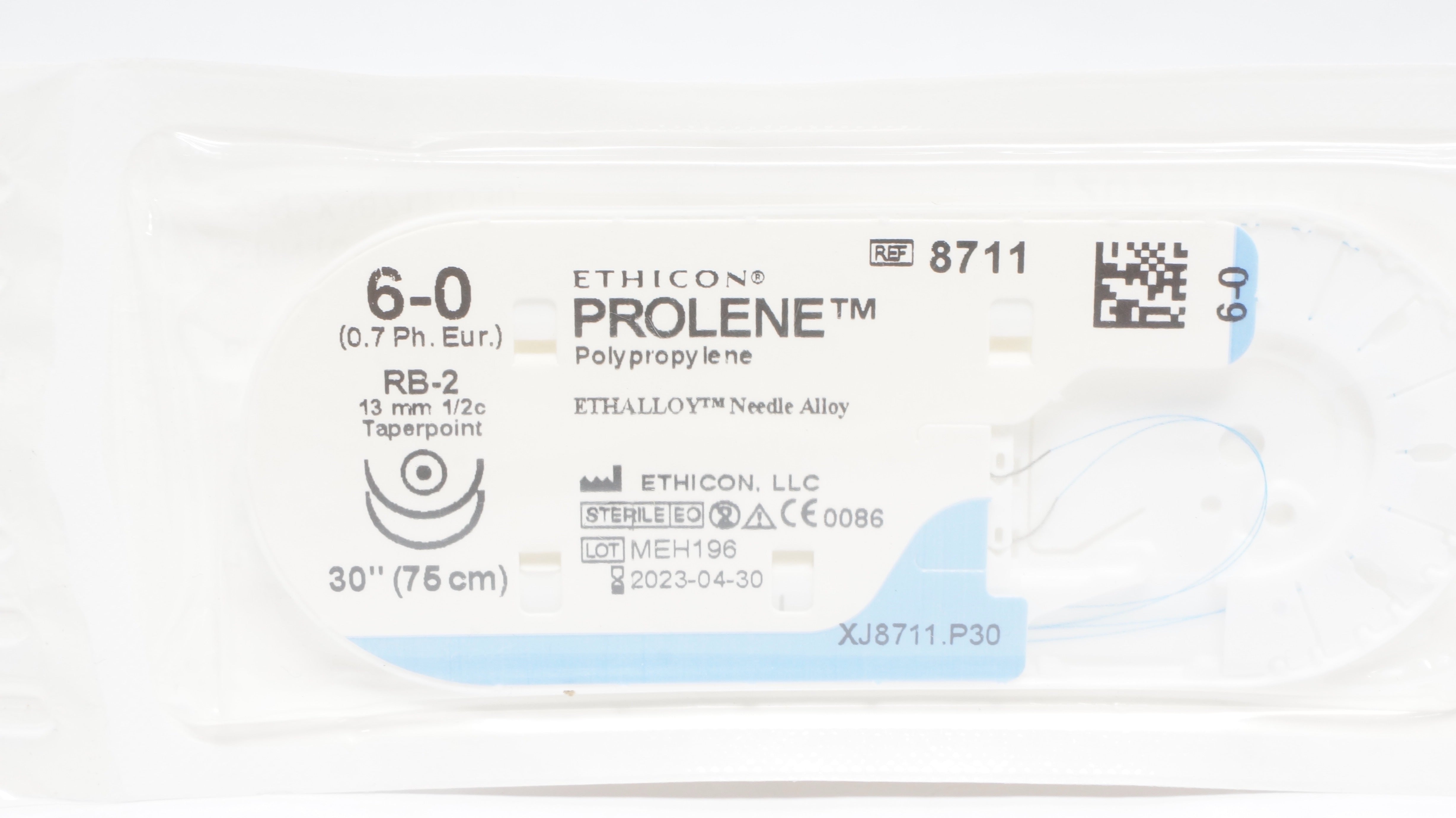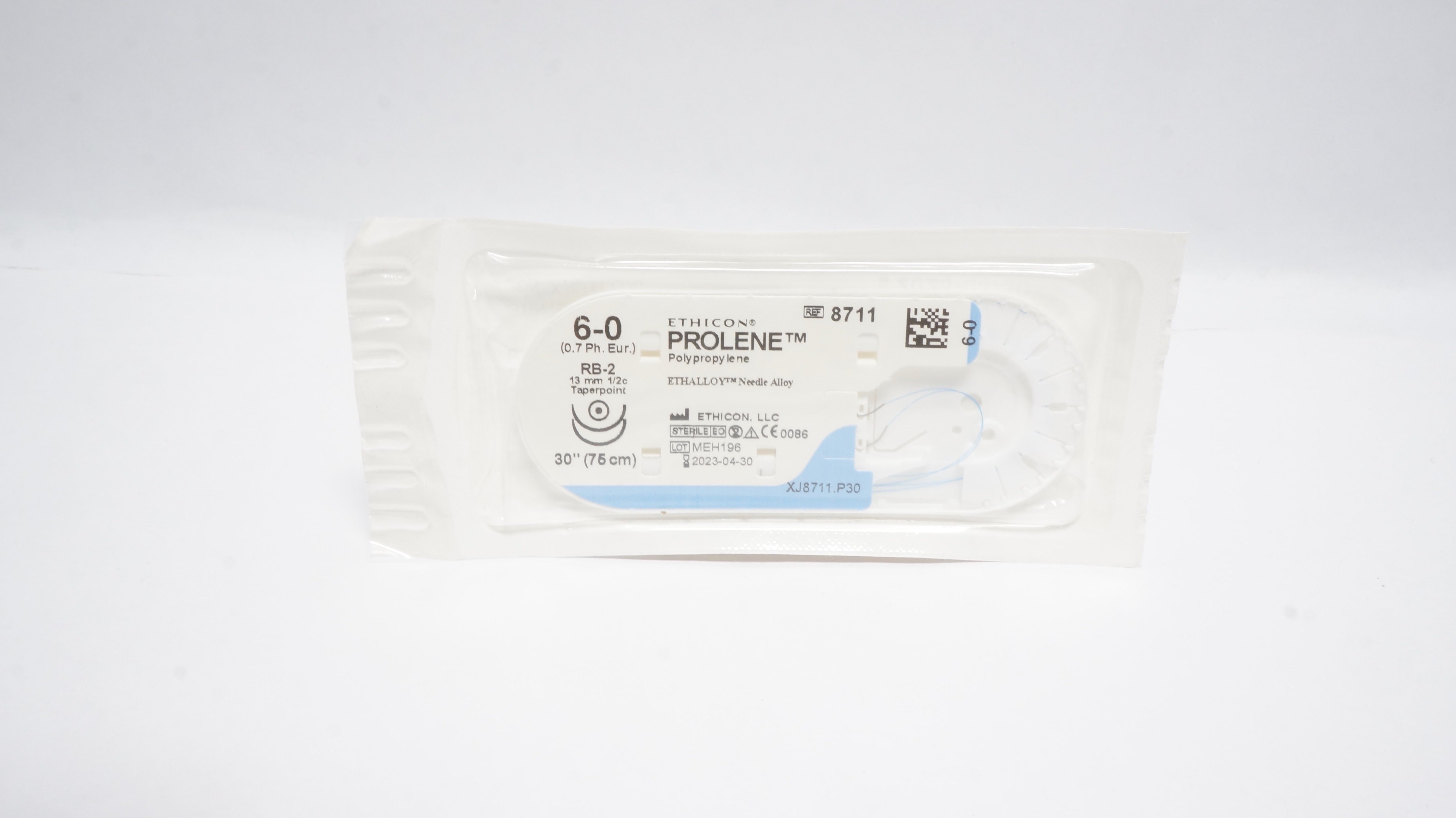 Ethicon 8711 6-0 PROLENE Polypropylene Suture Blue Monofilament RB-2 13mm 1/2c Taper, 30inch