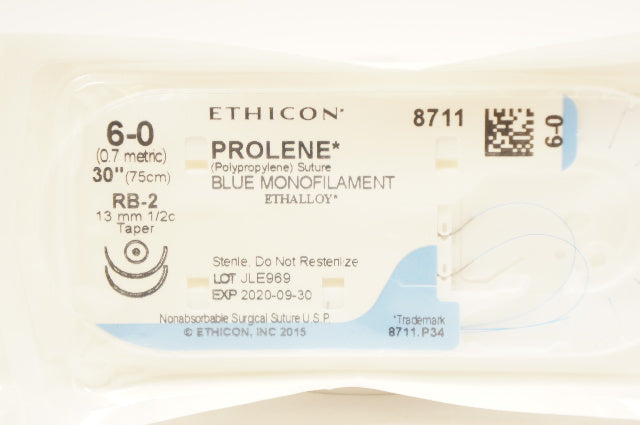 Ethicon 8711 6-0 PROLENE, RB-2, 13mm 1/2c Taper, 30inch