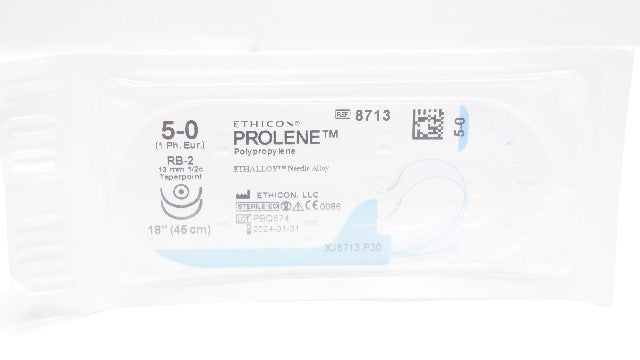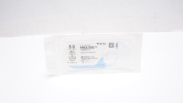 Ethicon 8713 5-0 PROLENE Polypropylene Blue Monofilament Suture RB-2 13mm 1/2c Taperpoint 18inch