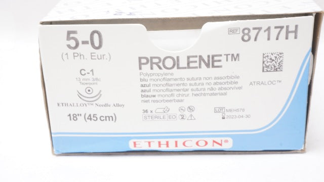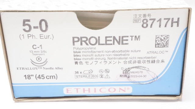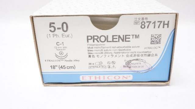 Ethicon 8717H 5-0 PROLENE, Blue Monofilament, C-1 13mm 3/8c Taper, 18inch