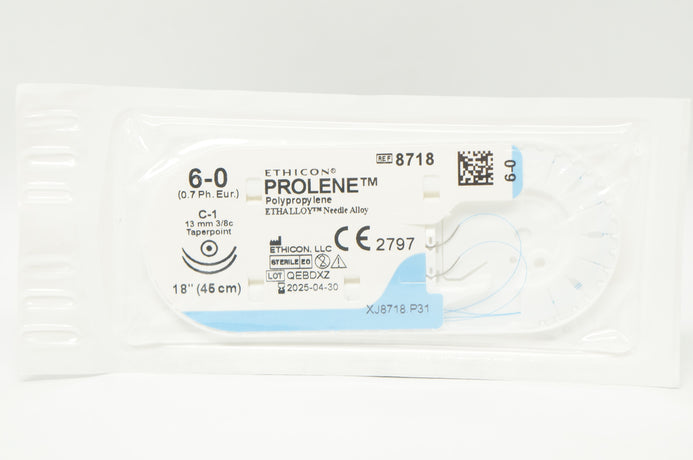 - Ethicon 8718 6-0 PROLENE, C-1, 13mm 3/8c Taperpoint, 18inch