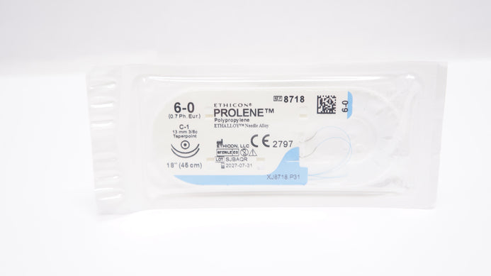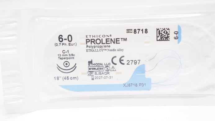 - Ethicon 8718 6-0 PROLENE Polyproylene Stre C-1 13mm 3/8c Taperpoint, 18inch