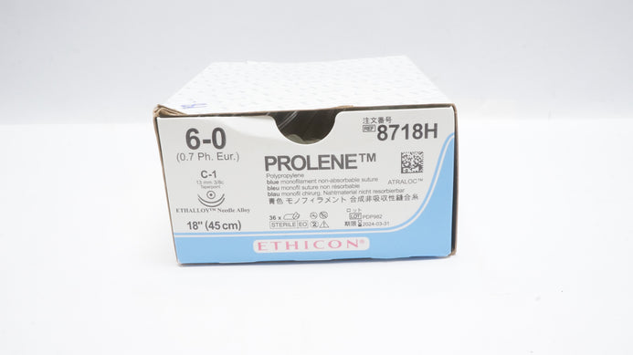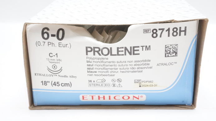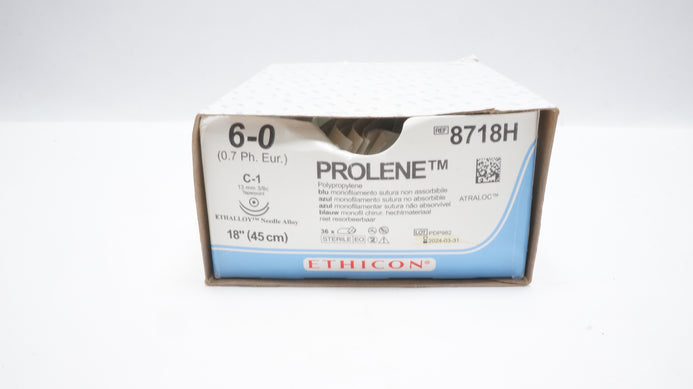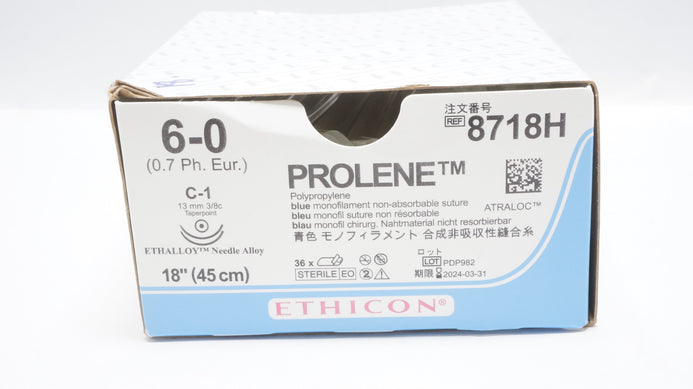 Ethicon 8718H 6-0 PROLENE, C-1 13mm 3/8c Taper, 18inch (x) - Box of 18