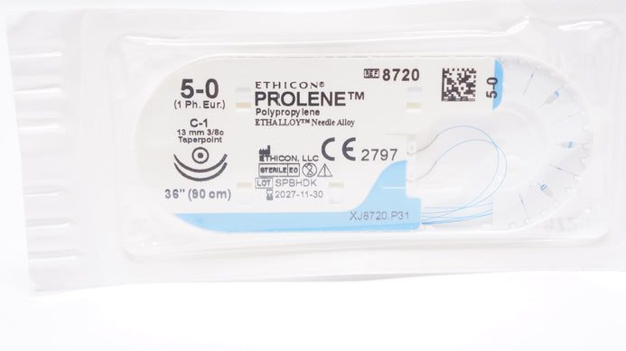 - Ethicon 8720 5-0 PROLENE Polypropylene Stre C-1 13mm 3/8c Taperpoint, 36inch