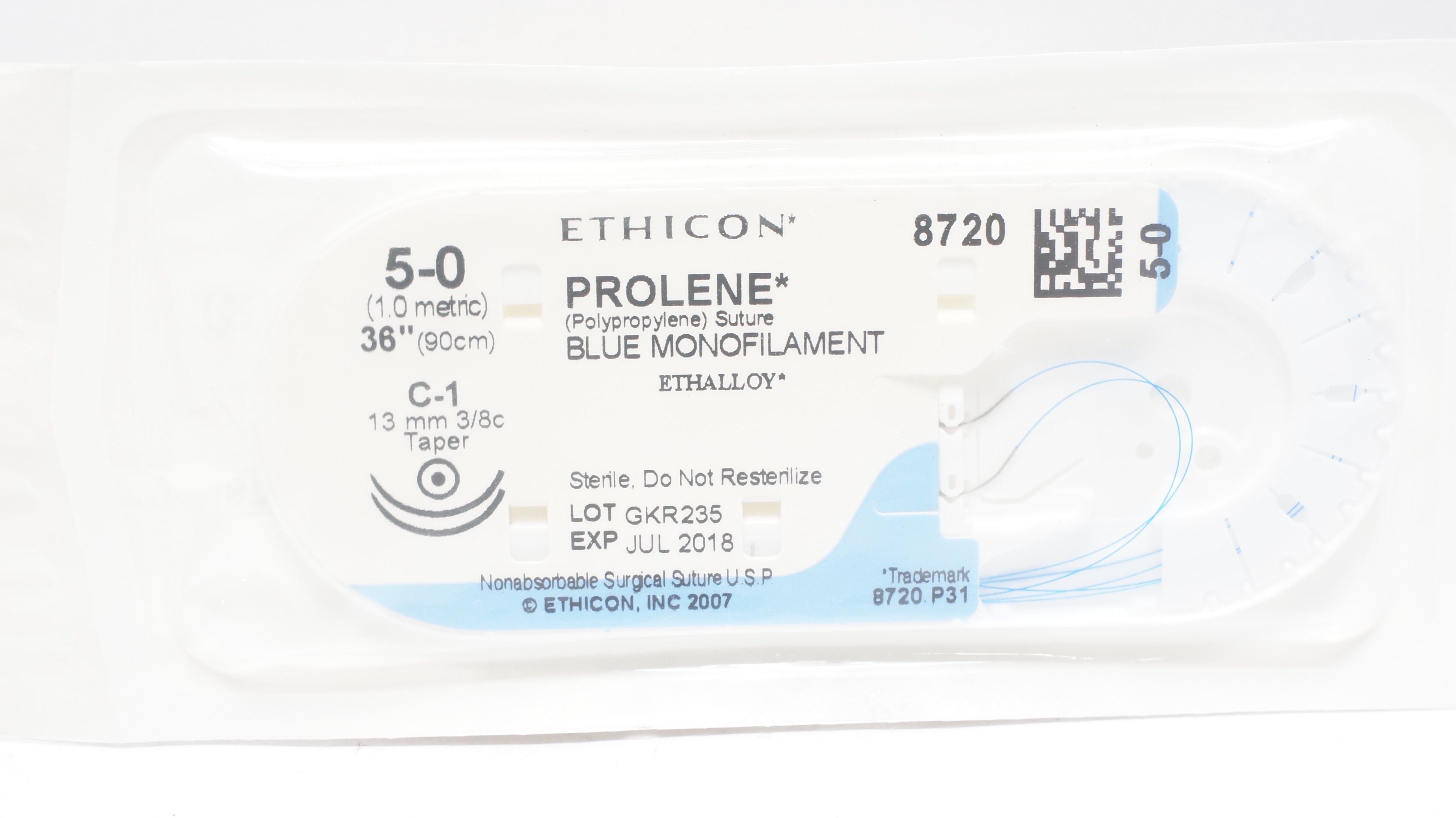 - Ethicon 8720 5-0 PROLENE Polypropylene Stre C-1, 13mm 3/8c Taperpoint, 36inch(x)