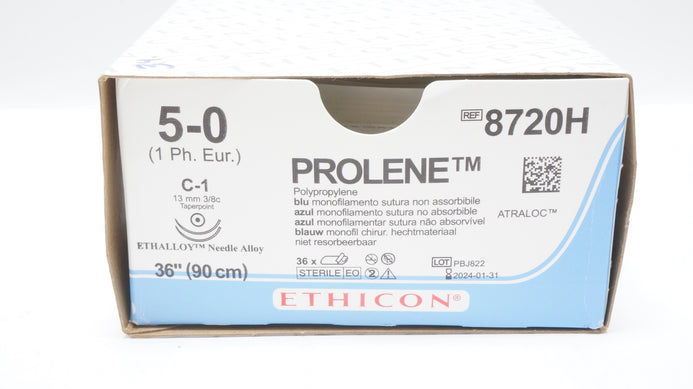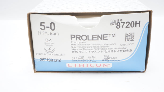 - Ethicon 8720H 5-0 Prolene Stre C-1 13mm 3/8c Taper (x) - Box of 34