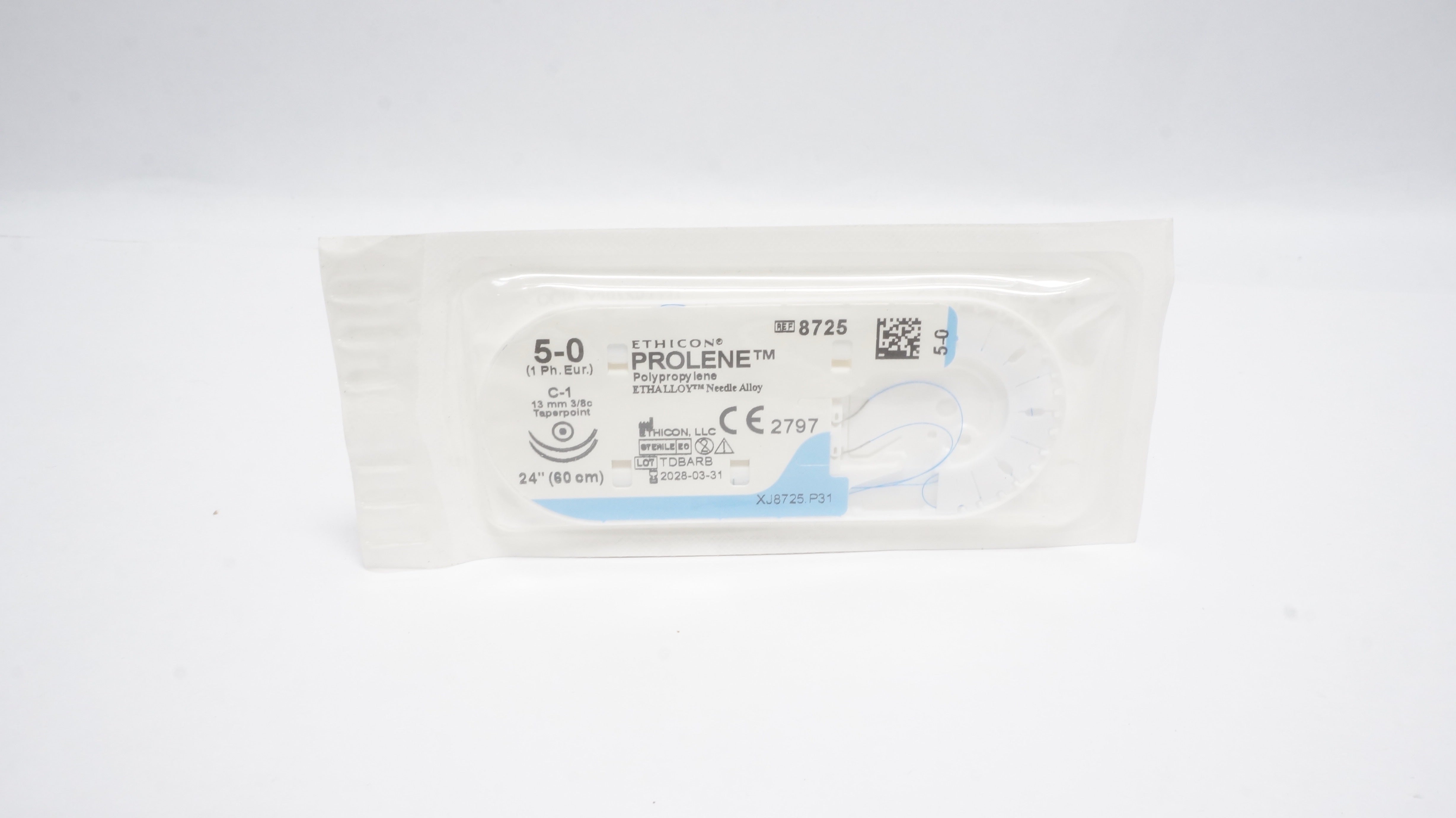 - Ethicon 8725 5-0 PROLENE Polypropylene Stre C-1, 13mm 3/8c Taperpoint, 24inch