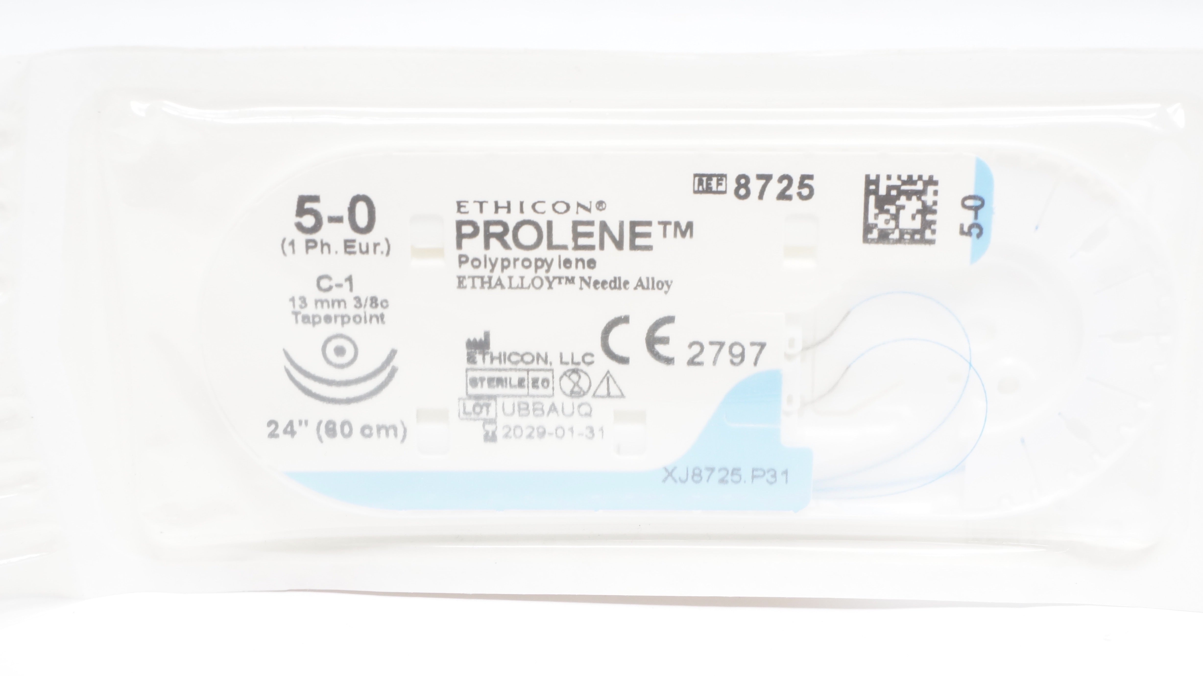 - Ethicon 8725 5-0 PROLENE Polypropylene Stre C-1, 13mm 3/8c Taperpoint, 24inch