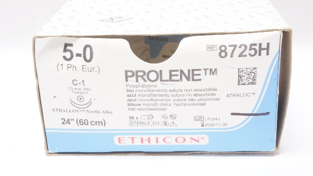 Ethicon 8725H 5-0 PROLENE Stre C-1 Taper 13mm 3/8c Taperpoint 24In-Box of 18 (x)