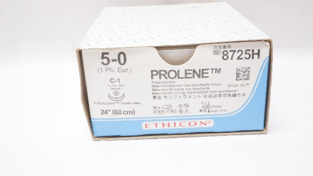 Ethicon 8725H 5-0 PROLENE Stre C-1 Taper 13mm 3/8c Taperpoint 24In-Box of 18