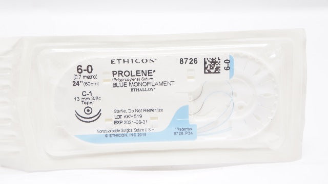 Ethicon 8726 6-0 PROLENE Polypropylene Suture Blue Monofiolament C-1 13mm 3/8c Taper, 24inch