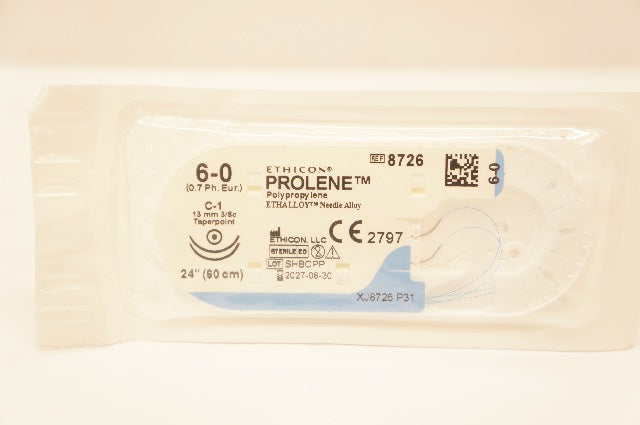 Ethicon 8726 6-0 Prolene Polypropylene Stre C-1 13mm 3/8c Taperpoint, 24inch
