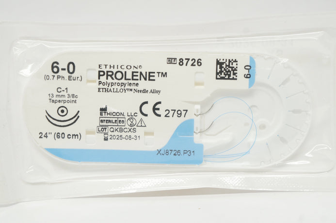 Ethicon 8726 6-0 Prolene Stre C-1 13mm 3/8c Taperpoint, 24inch