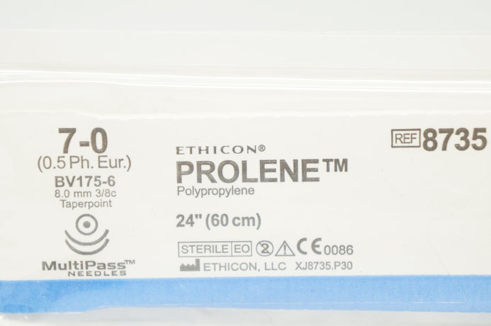 Ethicon 8735 7-0 PROLENE, BV175-6, 8mm 3/8c Taper, 24inch