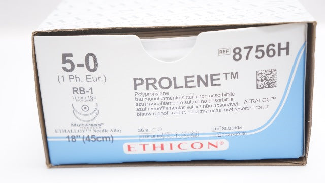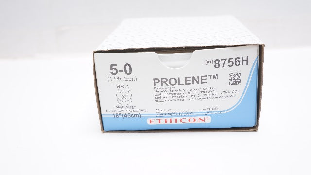 Ethicon 8756H 5-0 PROLENE Polypropylene Suture Blue Monofilament RB-1 17mm 1/2c Taperpoint, 18inch
