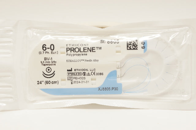 Ethicon 8805 6-0 PROLENE, BV-1, 9.3mm 3/8c Taperpoint, 24inch