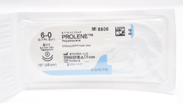 Ethicon 8806 6-0 PROLENE Polypropylene Stre BV-1 9.3mm 3/8c Taperpoint, 18in.(x)