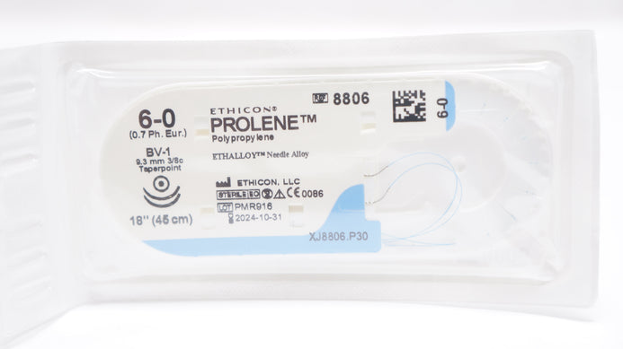 Ethicon 8806 6-0 PROLENE Polypropylene Suture Blue Monofialment BV-1 9.3mm 3/8c Taperpoint, 18inch