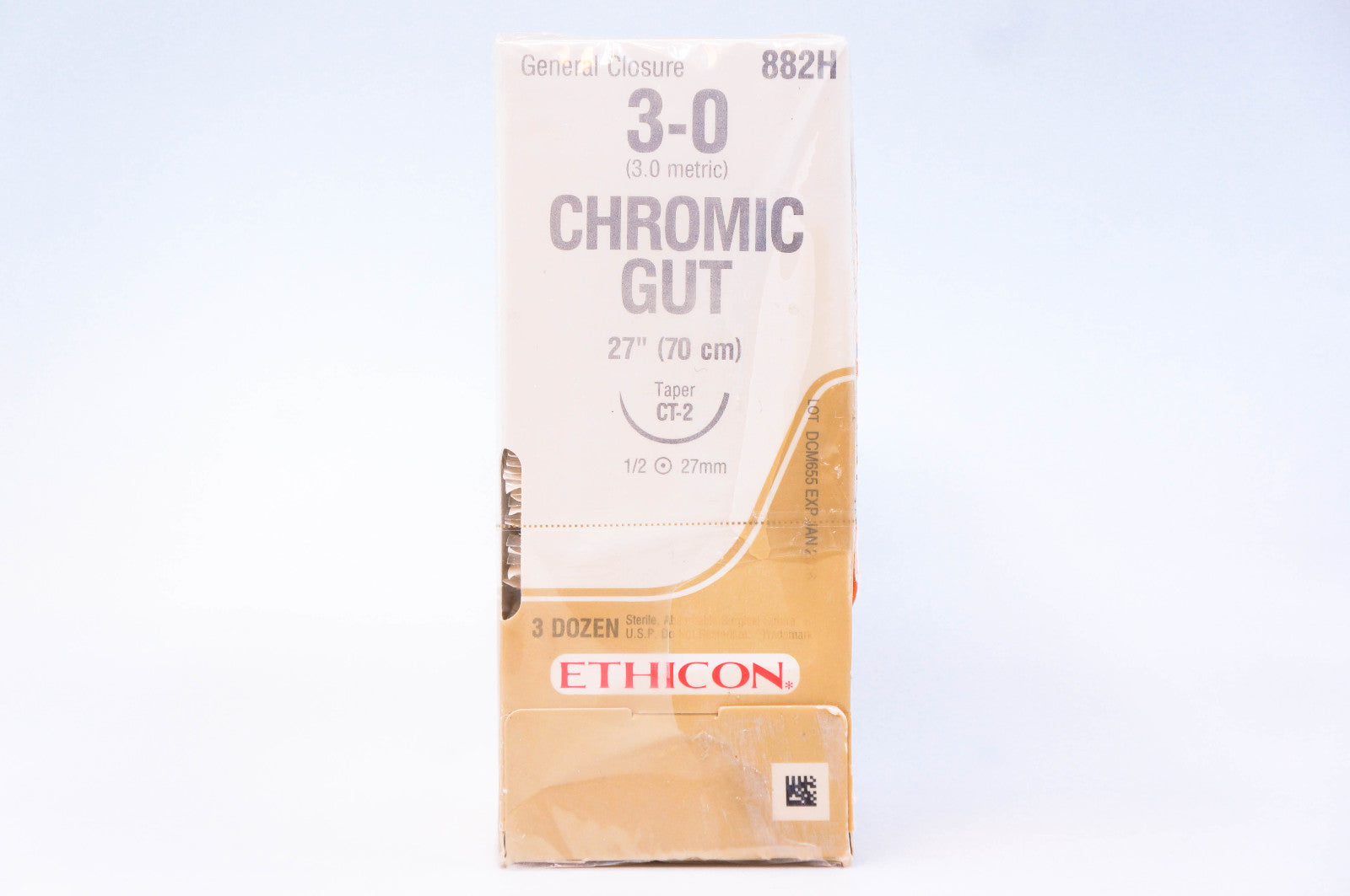 Ethicon 882H 3-0 CHROMIC GUT, CT-2, 27mm x 1/2 Taper, 27inch ~ Pack of 36 (x)