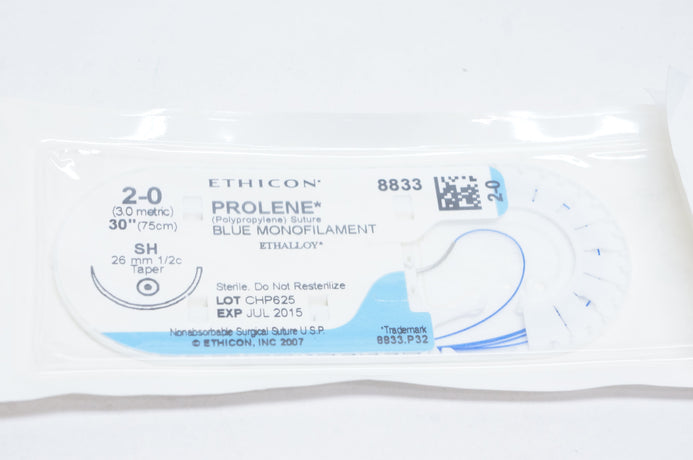 - Ethicon 8833 2-0 PROLENE, SH, 26mm 1/2c Taper, 30inch (x)