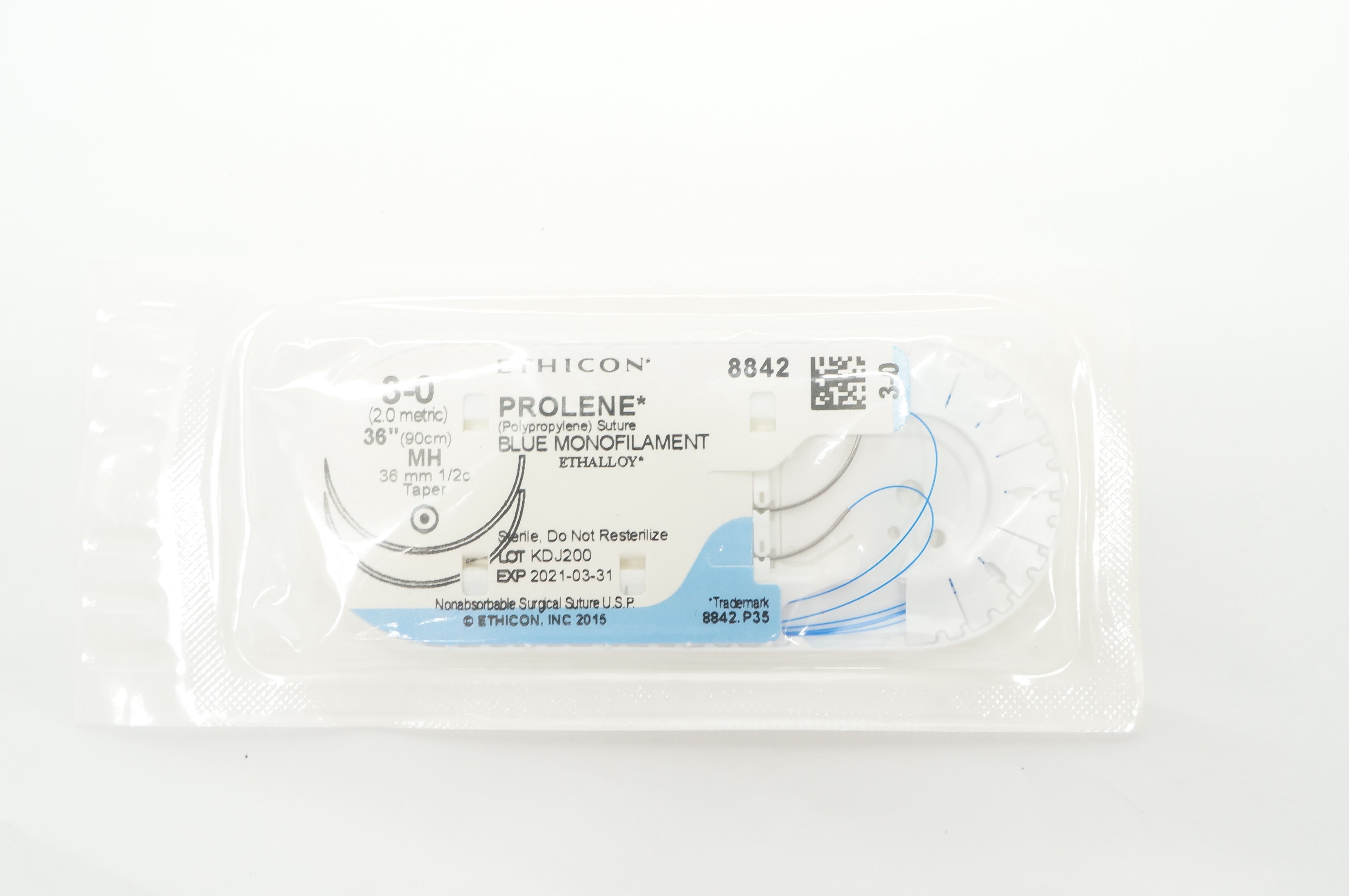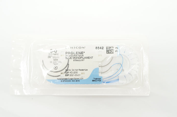 Ethicon 8842 3-0 Prolene Blue Monofilament MH 36mm 1/2c Taper, 36 inch (x)