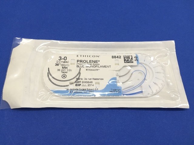Ethicon 8842 PROLENE, Taper Point, Non-Absorbable, MH 36mm, Blue Monofilament 36", Size: 3-0