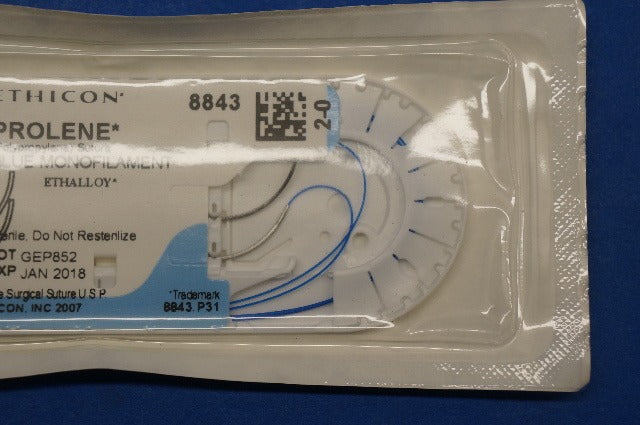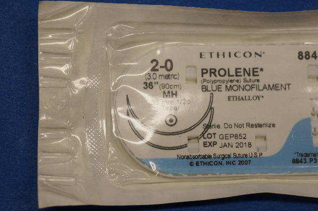 - Ethicon 8843 2-0 PROLENE, MH 36mm 1/2c Taper, Blue Monofilament, 36