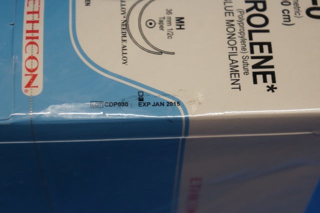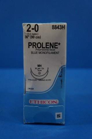 Ethicon 8843H PROLENE Suture, Taper Point, Non-Absorbable, MH 36mm / MH ½ Circle, Blue Monofilament 36" 90cm, Size: 2-0