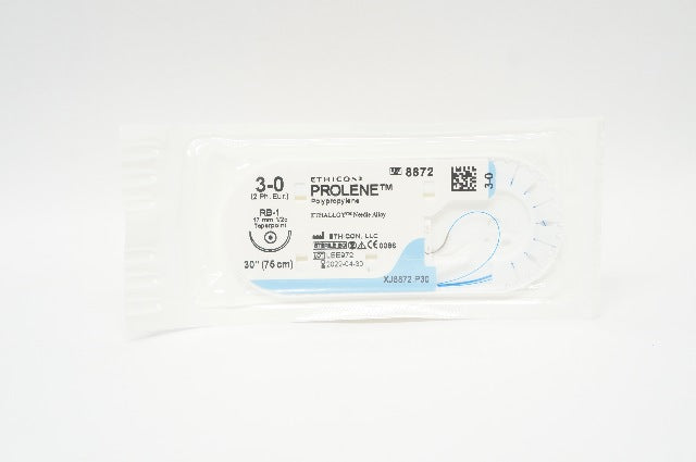 - Ethicon 8872 3-0 Prolene Stre RB-1 17mm 1/2c Taperpoint 30inch (x)