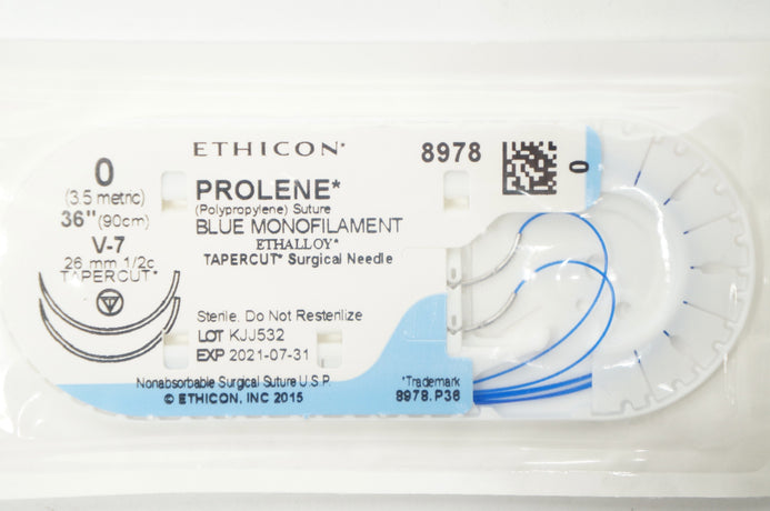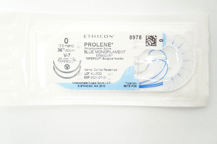 - Ethicon 8978 0 PROLENE Polypropylene V-7, 26mm 1/2c Tapercut, 36inch (x)