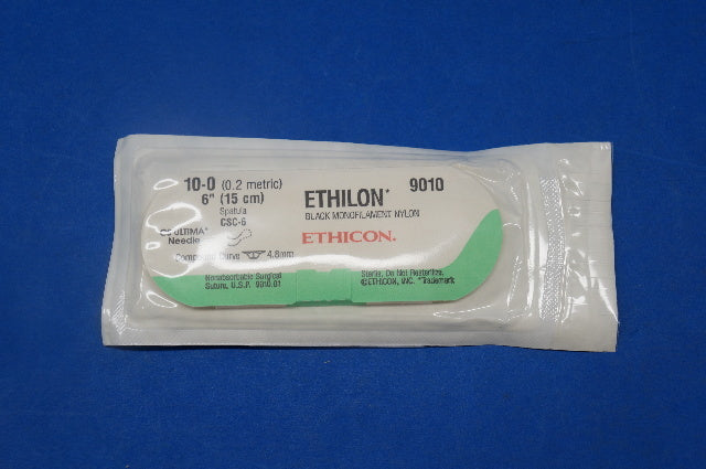 - Ethicon 9010 10-0 ETHILON, Spatula CSC-6, Black Monofilament, 6