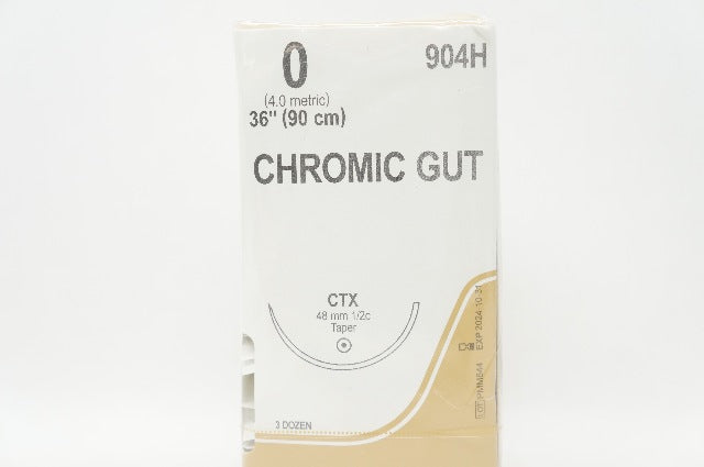Ethicon 904H 0 CHROMIC GUT Nylon Stre CTX, 48mm 1/2c Taper, 36inch - Box of 36