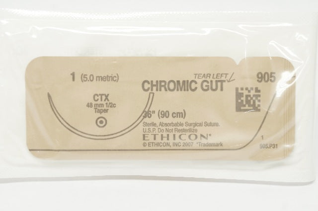 Ethicon 905 1 Tear Left Chromic Gut Absorbable Stre CTX 48mm 1/2c Taper 36inch
