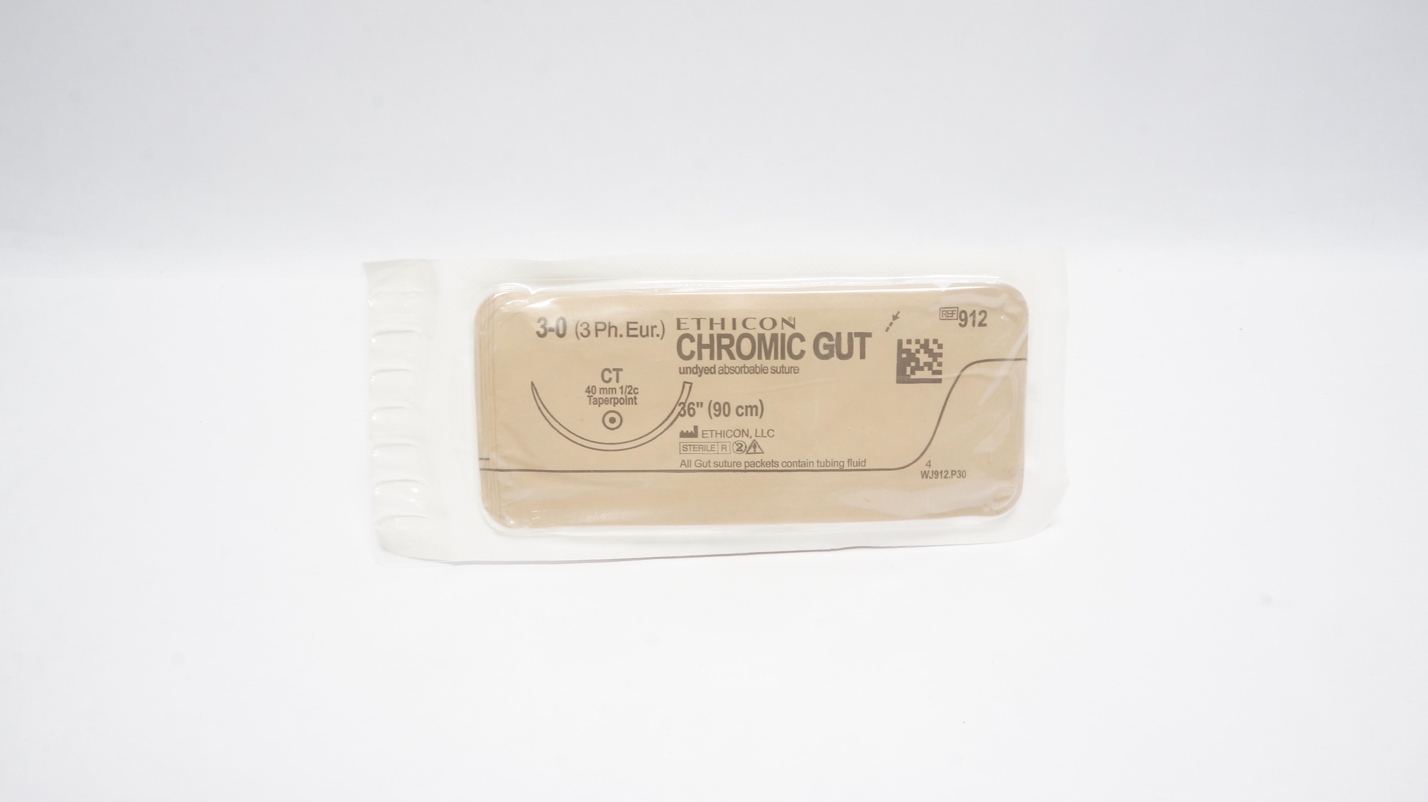 Ethicon 912 3-0 CHROMIC GUT Surgical Suture CT 40mm 1/2c Taper, 36inch