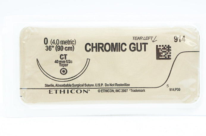 Ethicon 914 0 CHROMIC GUT, CT, 40mm 1/2c Taper, 36inch