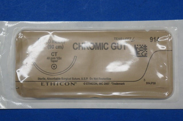 - Ethicon 914 CHROMIC GUT, CT 40mm 1/2c Taper, 36
