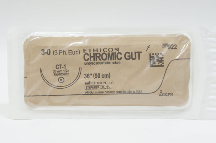 - Ethicon 922 3-0 CHROMIC GUT, CT-1, 36mm 1/2c Taperpoint, 36inch