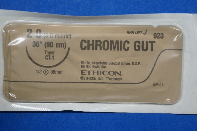 - Ethicon 923 2-0 CHROMIC GUT, CT-1 36mm 1/2c Taper, 36