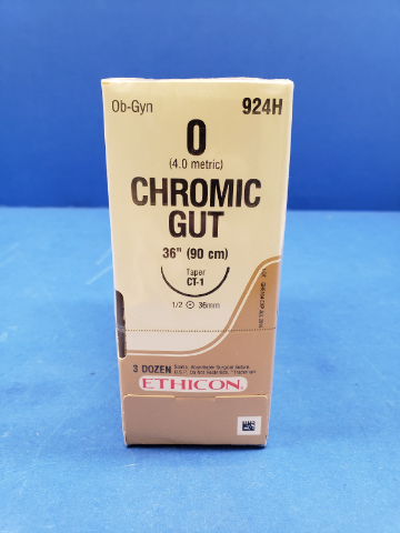 - Ethicon 924H 0 CHROMIC GUT, CT-1, 1/2 36mm Taper, 36 - Box of 36