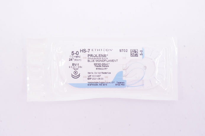 - Ethicon 9702 5-0 PROLENE BV-1 9.3mm 3/8c Taper 24inch